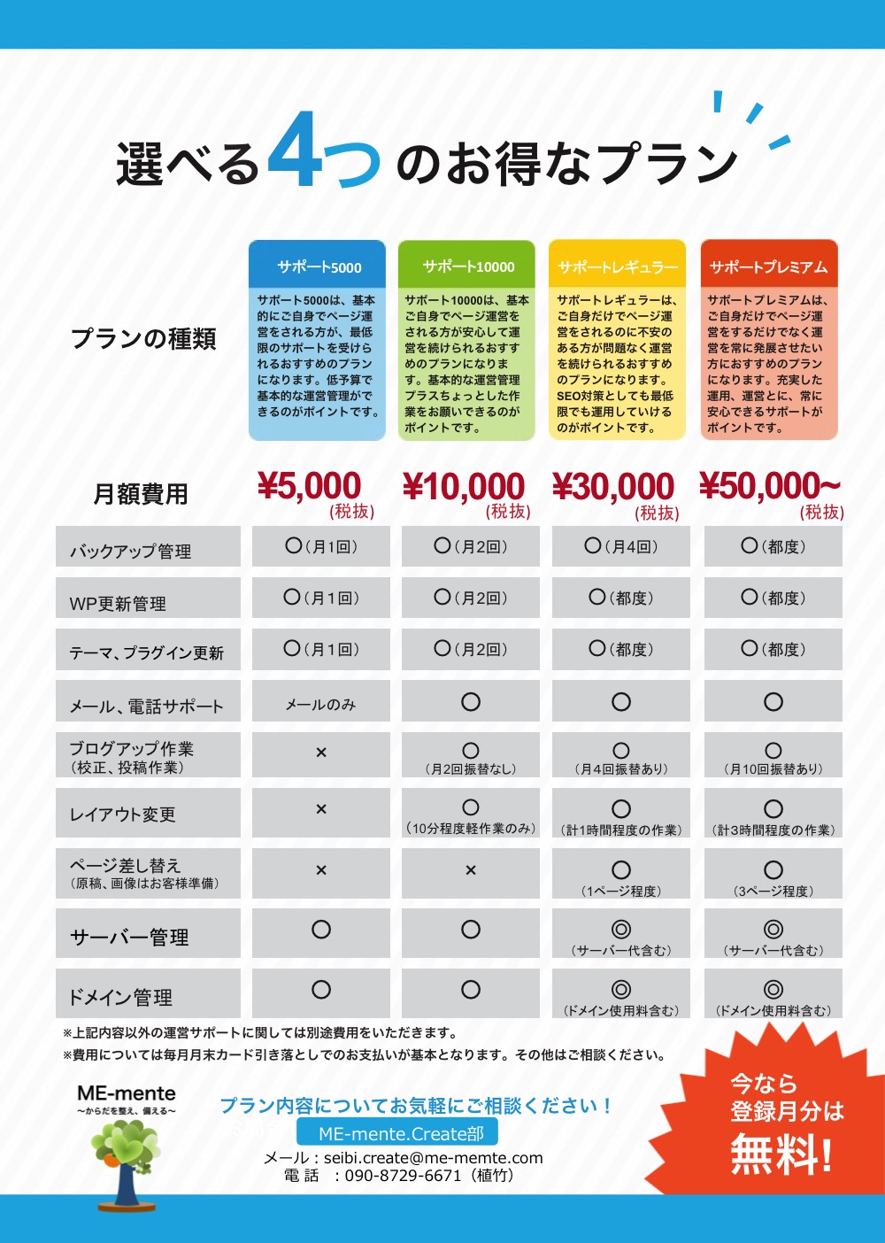 定期サポートをご利用をされる方は、少しお得に制作できます。